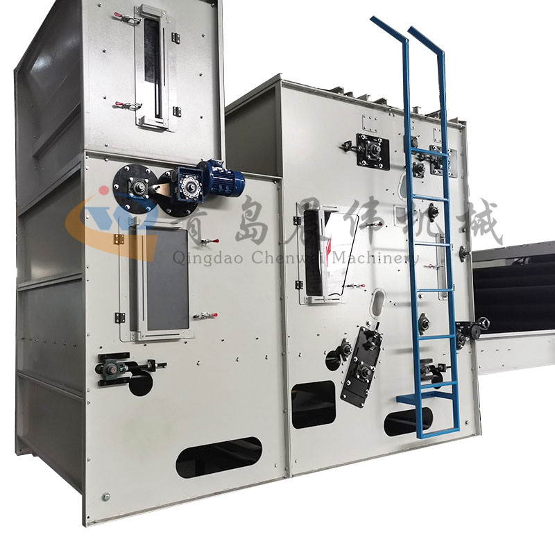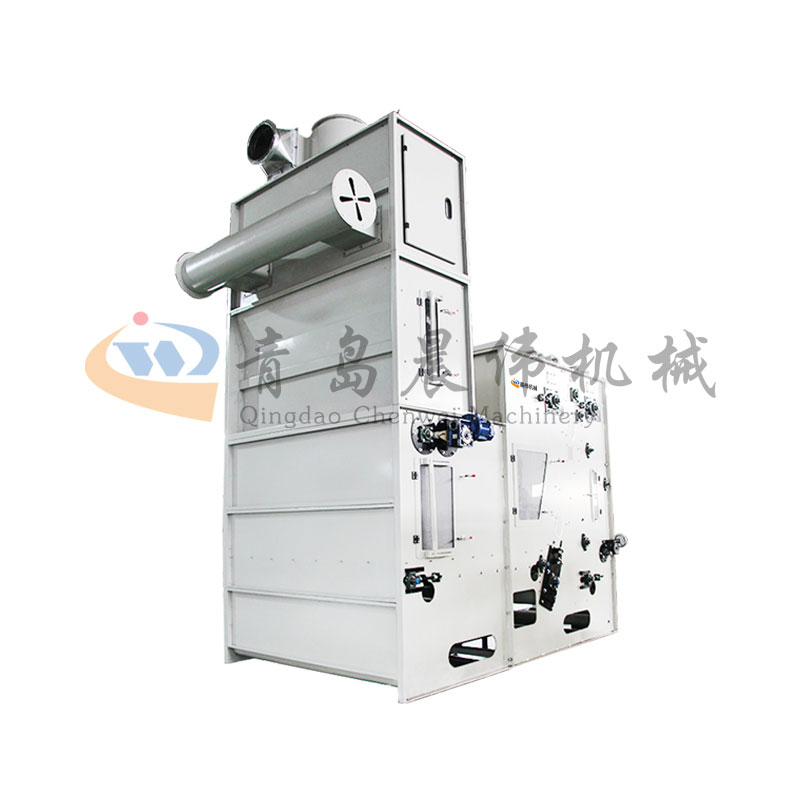震動式給棉機(jī)主要式將經(jīng)過初步開松的纖維集中收集在棉倉中,并且鋪成相對均勻,等厚,等寬的纖維棉層輸送到梳理機(jī)。